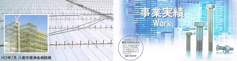 241m、54階建ての東京六本木ヒルズで使用している頭付スタッドは当社が単独受注納入したものです。